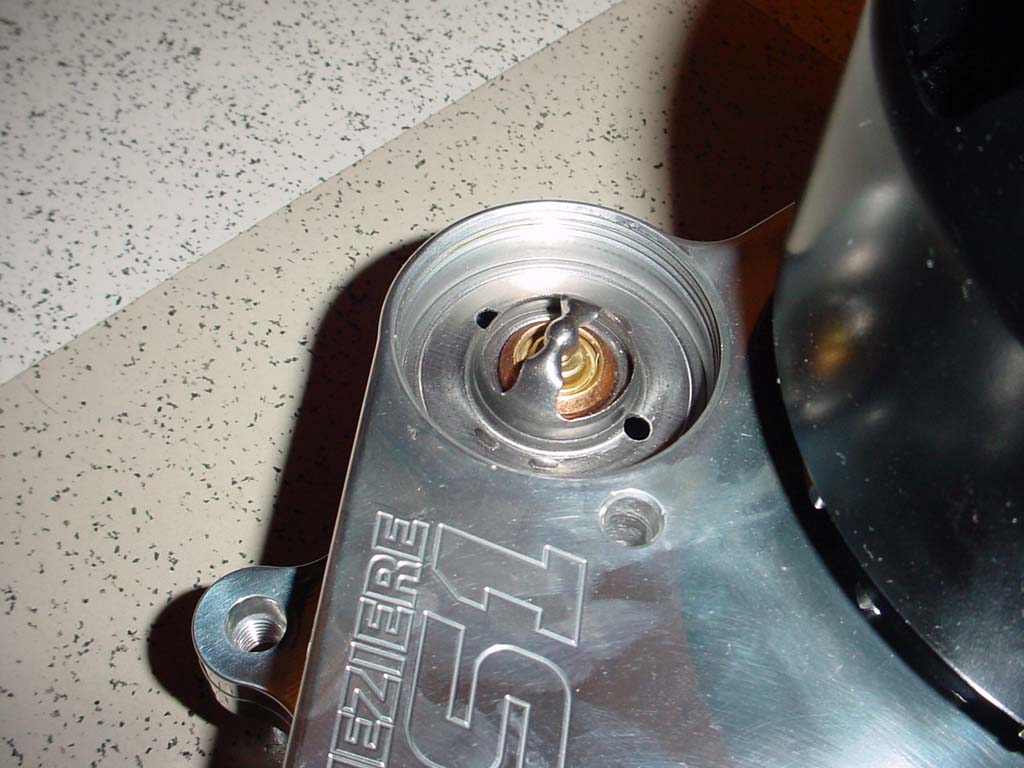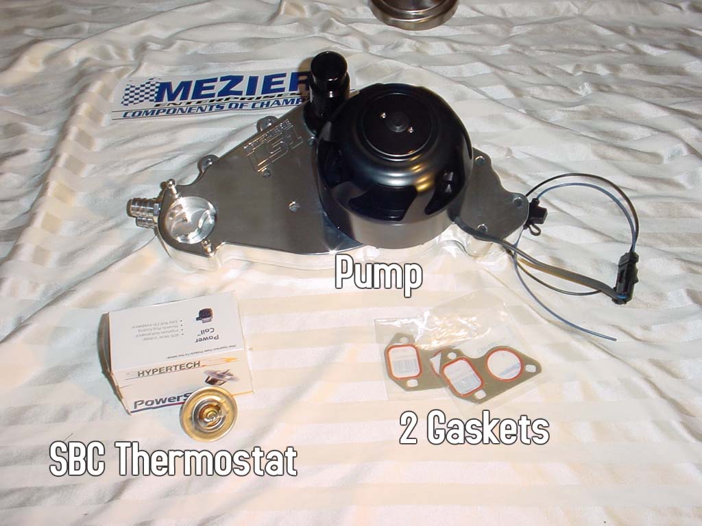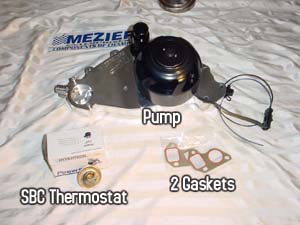 thermostat. The Meziere pump uses an old small block chevy style thermostat to