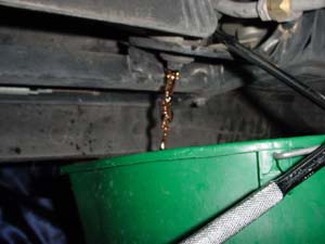 Start by driving the car up on ramps and shutting it off. If the car has been running for a long time and is fully warmed up, let it sit for 30 minutes to an hour to let the coolant pressure go down. Once cooled, remove the coolant reservoir cap and get under the car. Find the drainage valve on the passenger side of the radiator. Using 1/4" drive ratchet, or a large flat blade screwdriver, twist the drain valve counter clockwise and have a bucket ready to catch the coolant coming from the spout. |