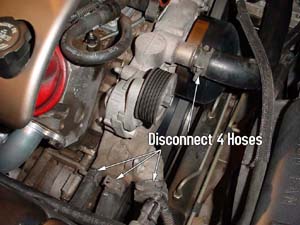 There are 4 hoses we now need to disconnect from the water pump. First remove