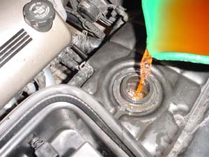 It's time to fill the car back up with coolant now! Before you do anything, get