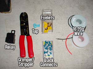 over to the relay, and the black wire will need to get to a grounding point. Chances are, the pump's wires are too short to make it to where you'd like to go, so you may need to extend the wires some. If this is the case, you can use posilocks, butt connectors, or you can solder an extension on. To solder, you strip an end of each wire, interleave the strands of wire, and twist them together...then, apply solder to the connection and heat shrink it. This is the best way to extend a wire, however the other methods will suffice. |