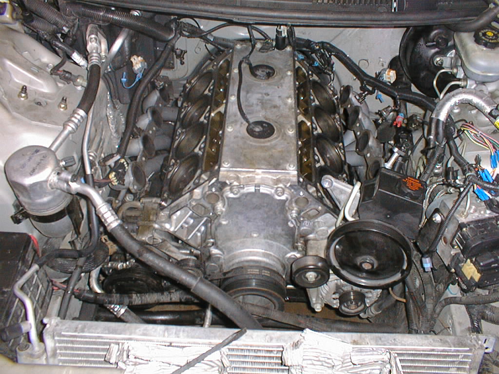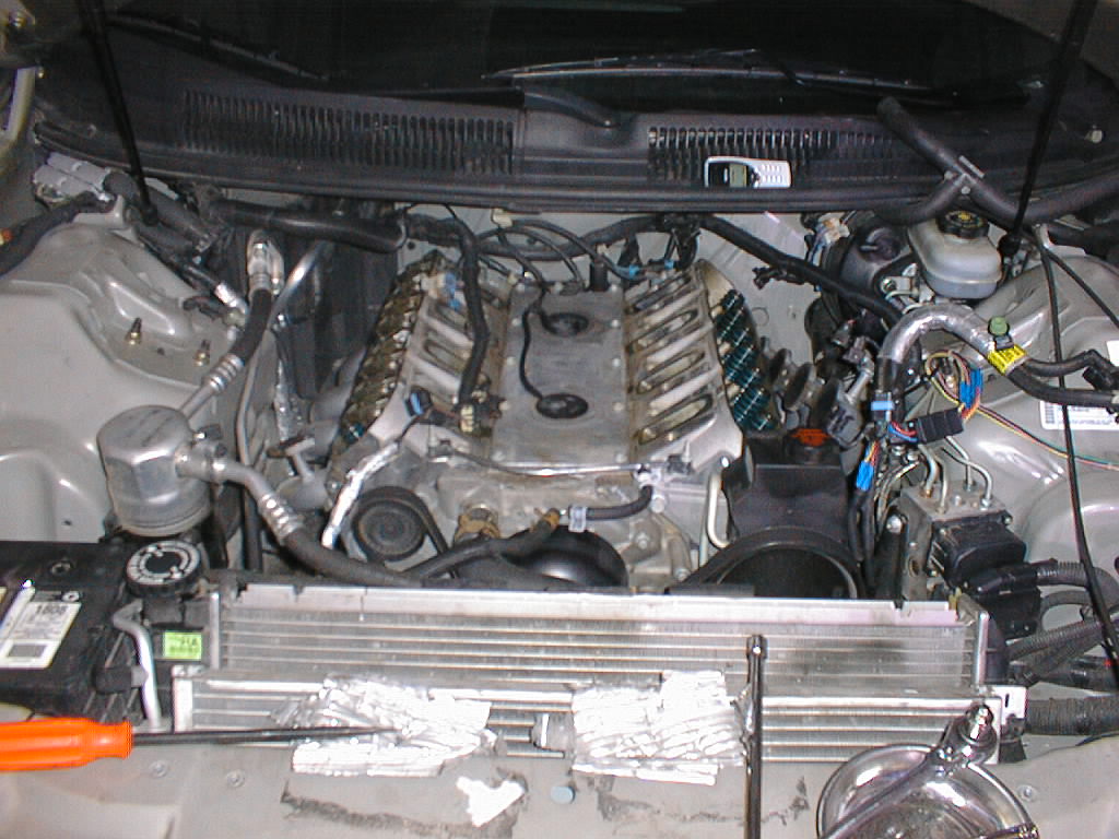 Preliminary stuff:Disconnect the negative terminal on the battery and then start draining the radiator by opening the valve on the bottom passenger side of the radiator. Remove the air lid/MAF assembly. Disconnect the throttle cable and possibly the cruise control cable from your throttle body.
