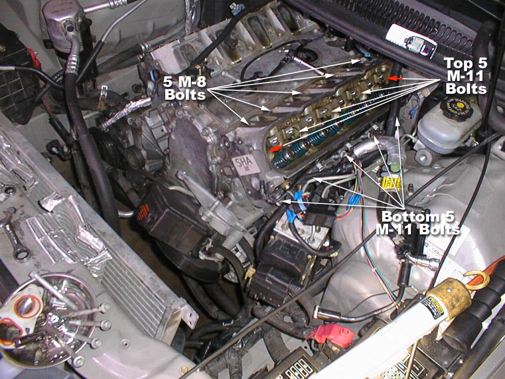 - 16 Long "M-11" Headbolts PN 12560744 - 4 Short "M-11" Headbolts PN 12560745 - 10 "M-8" Headbolts PN 12558840 (PN might be for bag of 5) - 2 Head gaskets PN 12558809(drivers side) and 12558810 (pass side) - 2 AIR tube gaskets PN 12553617 - 1 EGR gasket PN 12553047 - 6 quarts of oil, new filter - Water pump gaskets for 1998 model cars (PN 12559271 2 needed) - Jug of dexcool compatible coolant (or save your old stuff) |