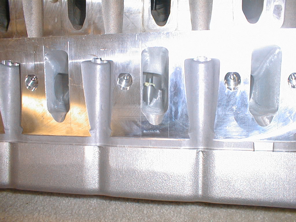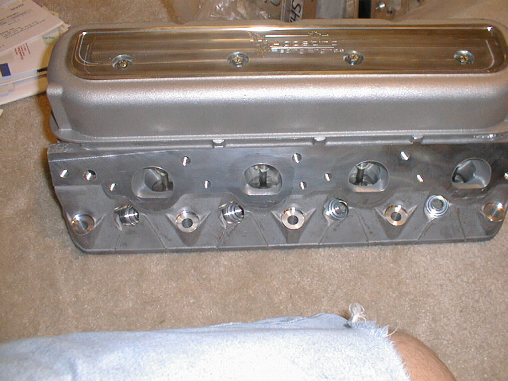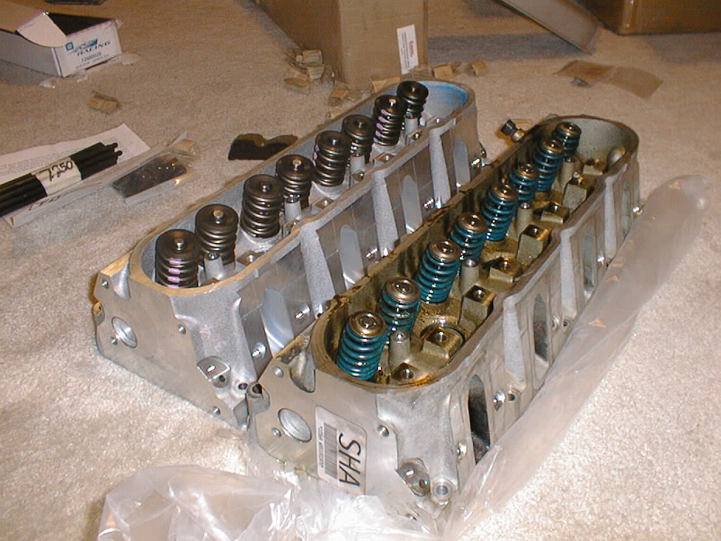 A very common mod these days is to swap on ported heads. We went with heads from ARE and the heads came with the springs/valves pre-installed for our convienience...your heads will probably come the same way. Here are a few shots showing the difference between stock heads and the ported heads: |