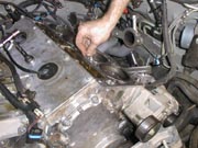 Remove the Intake manifold using the instructions I provide here. You can leave the fuel rail and throttle body connected to the intake manifold. Remove the coolant pipe(s) shown in the link as well and place them aside. Remove the AIR tubes by unbolting the air tubes from the exhaust manifolds/headers. There are 2 10mm bolts holding the tubes down. Once unbolted, unhook the tubes from the rubber hoses they are attached to. Use a screwdriver to pry off the plastic fastener. Remove the EGR valve by unbolting the 2 15 mm bolts holding it to the passenger side head. Then unbolt the 2 10mm bolts from the exhaust manifold/header and disconnect the electronics going to the EGR. Place assembly aside. Remove the coil packs by first disconnecting the plug wires, then unplugging the big plastic wiring harness, then unbolting the 5 double ended bolts holding the pack rail to the valve cover ('98 cars will have to remove each pack individualy). These bolts are 10mm and you'll need a deep socket to get to them. DO NOT loosen the "pointy" looking double ended bolts. The rear one on the passenger side is a real PITA....I never reinstalled mine after the first time I took it off...you shouldnt either. Remove the valve covers using an 8mm socket to undo the 4 bolts holing it to the head. Once loosened, pull the bolts up a bit...they wont come all the way out. Once loosened, pull the valve cover off. You'll need to unplug the PVC vent hoses from the backs of the valve covers...they will just pull right out. Take off Ypipe by unbolting the 2 bolts on the flange at the bottom of the headers. Our bolts were 9/16". Loosen the ypipe where it connects to the catback exhaust until you can get the ypipe free from the headers. Once free, remove the 12 bolts (6 on each side) holding the exhaust manifolds or headers to the head. |