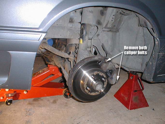 Suspend caliper out of the way..making sure not to tug hard on the rubber brake line.