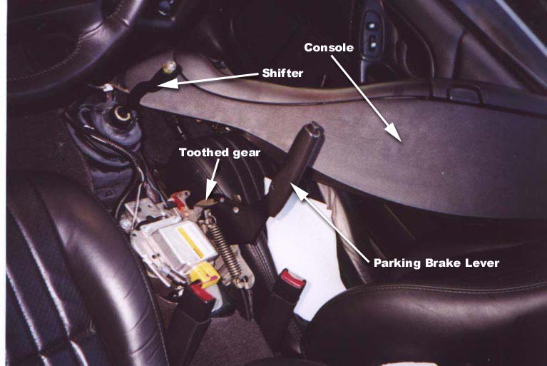The next step is possibly the hardest to explain. The goal is to get the parking brake lever to point straight up into the air (See pic). The