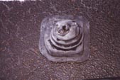 Apply some Silicon gasket maker onto your new pro5 shifter like shown in the photo to the left Alternativly, you can apply the gasket maker to the mount point on the tranny....in hindsight I think this would be the best way to do it. Make sure you completly circle the 4 bolt holes. |