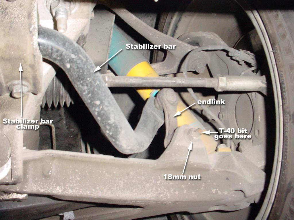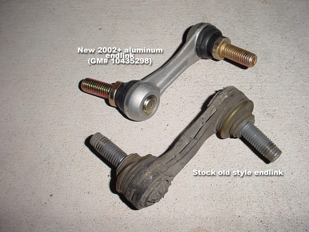 Parts: - Front and rear swaybars (Z51, Z06, T1, and hotchkis bars are popular) - New bushings for the front/rear bars - Grease for bushings - 4 endlinks if you have plastic endlinks stock (97-00 C5s?) Tools: - Floor jack - Ramps - 2 jackstands - Socket wrench - Torque wrench - Deep 18mm socket - Torx - 40 bit - Hex 6mm bit - 15 mm socket or 15mm wrench - 18 mm wrench (gear wrench preferred) - 13 mm socket - 6" extension for socket wrench - Adapter to fit sockets onto your torque wrench (incase torque wrench is 1/2" drive, and sockets are 3/8") Part #'s of Interest: - GM OEM Z06 Front Swaybar: 10419094 - GM OEM Z06 Front swaybar bushings:10419095 (2 needed) - GM OEM Z51 Front swaybar:10424741 - GM OEM Z51 Front swaybar bushings:10424742 (2 needed) - GM OEM Z06/Z51 Rear Swaybar: 10424743 - GM OEM Z06/Z51 Rear swaybar bushings:10431951 (2 needed) - GM OEM 2002+ Z06 Aluminum endlinks:10435298 |
