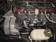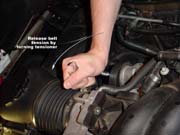 Find the steering shaft on the drivers side of the engine and you'll see a black plastic boot on it at the front end of it, where it meets the power steering rack. Either unclip it, or unscrew the clamp holding it in place and slide the boot up some so you have access to the 13mm bolt that goes into the joint. If your wheels are pointing straight ahead, the bolt will be accessable. Using a 13mm socket wrench, unbolt this bolt. Now, try to force the steering shaft towards the drivers side of the car as much as possible (it should move out of the way another 1/2" to 1" since the bolt is out and the joint can pivot a bit).
