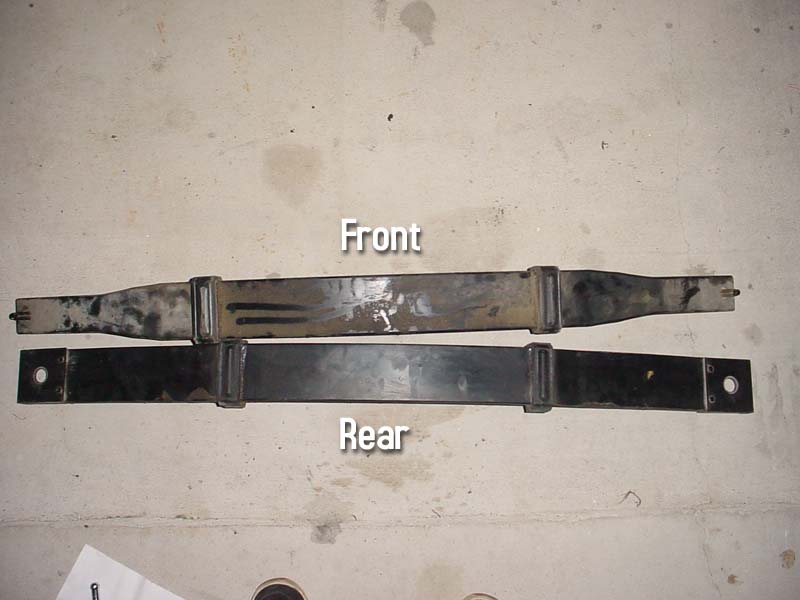 Now, look under the car and see how the spring is setup. It's a big black bar of fiberglass that runs from one side of the car to the other. At the ends of the spring, a big long bolt goes through the spring and attaches to the lower A-arm. This is what controls the rear of the car's ride height. More towards the middle of the spring, there are 2 brackets that mount the spring to the cross member. It's a pretty simple layout.